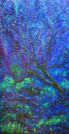 The exhibit is part of a larger, ongoing body of work in which the titles of the paintings are borrowed from beat poet Jack Kerouac’s writings — mostly from Dharma Bums and On The Road.